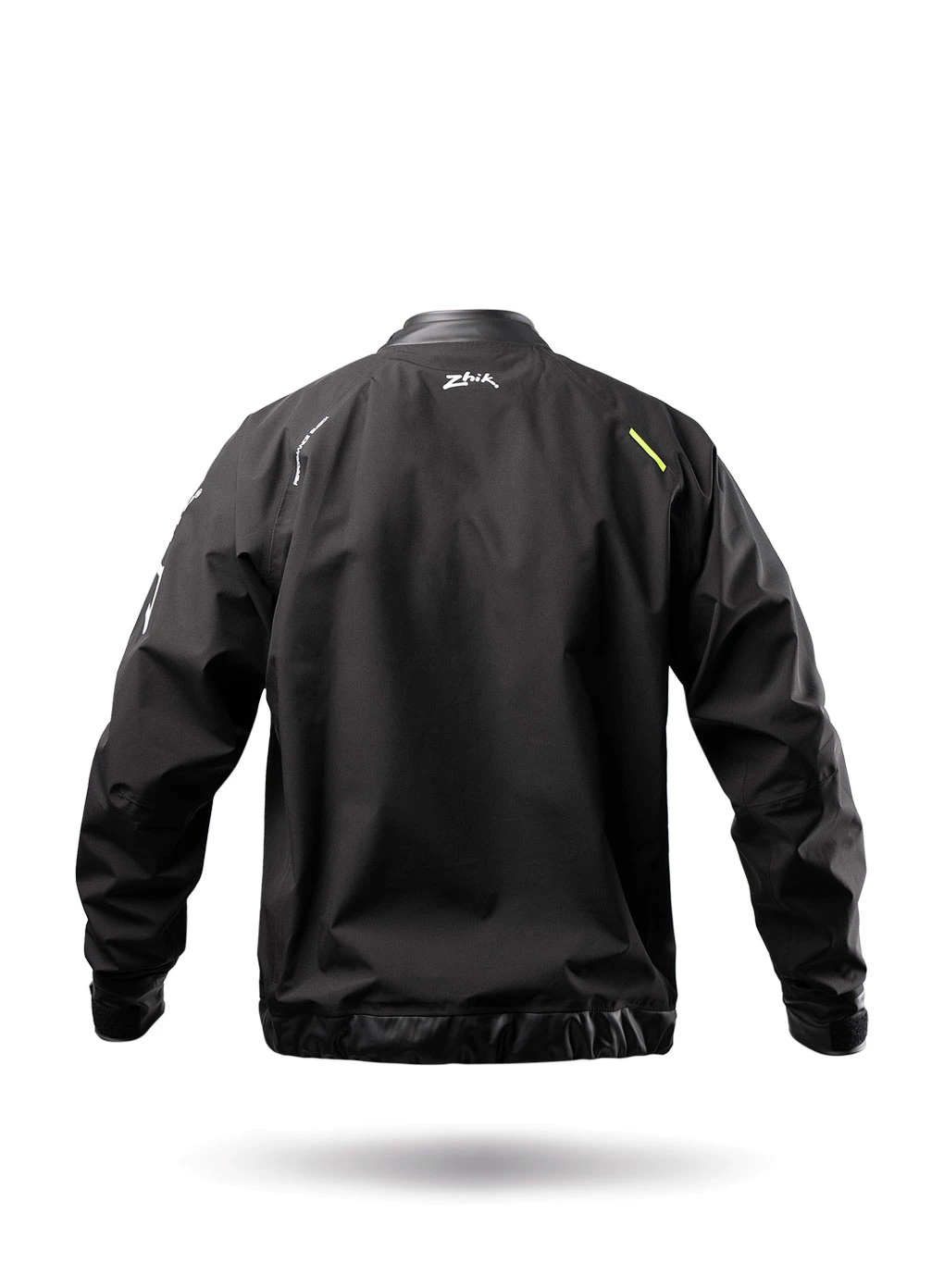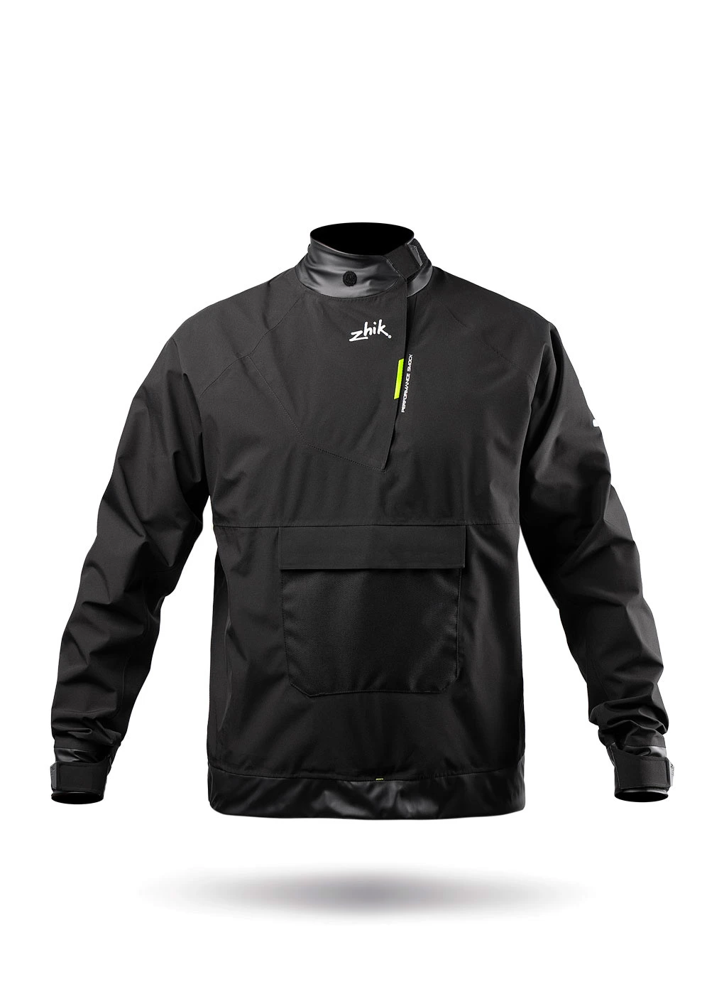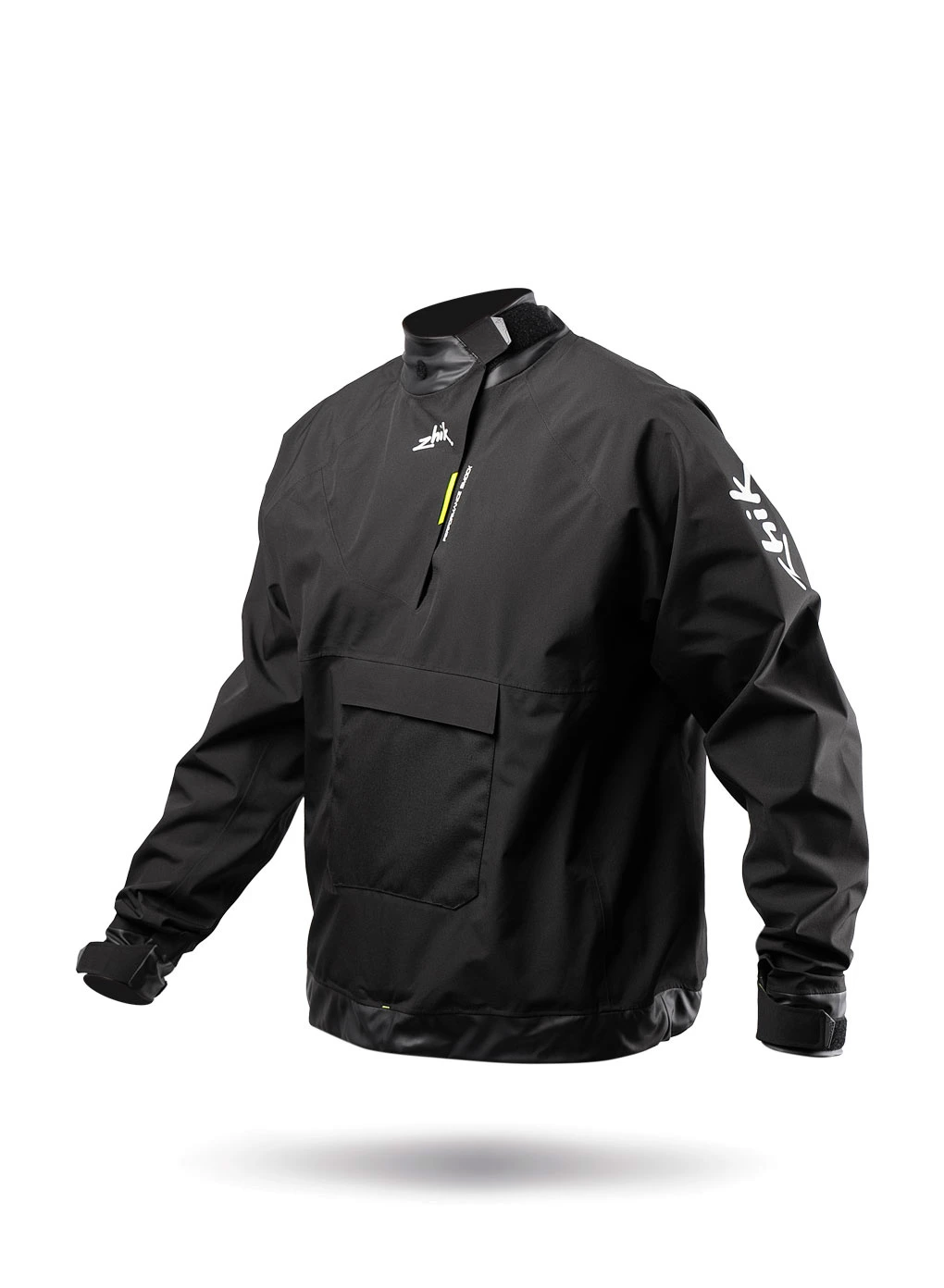 A performance shell designed for competitive dinghy sailors and sports boats, this smock features Zhik’s breathable and waterproof 3-layer Vecta fabric and is seam-sealed throughout. Adjustable neck, wrist, and waist seals prevent water entry, while a large neck opening allows the garment to be vented and cooled when needed. This smock has a generous race cut fit for full range of movement, and room to wear a PFD underneath. With minimal hardware and streamlined features this smock was designed to fit close to the body and worn over a PFD for minimal aero interference.