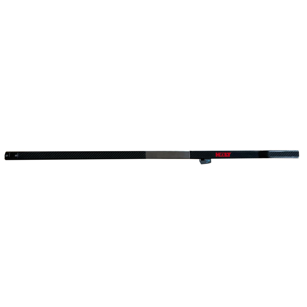 The Holt Laser Carbon tiller is lightweight and stiff with its full carbon design. The design also includes a recessed wear protection plate, low profile cleat and tapered end for extended deck cleat clearance and an integrated anodised cam cleat on the side for your rudder downhaul.