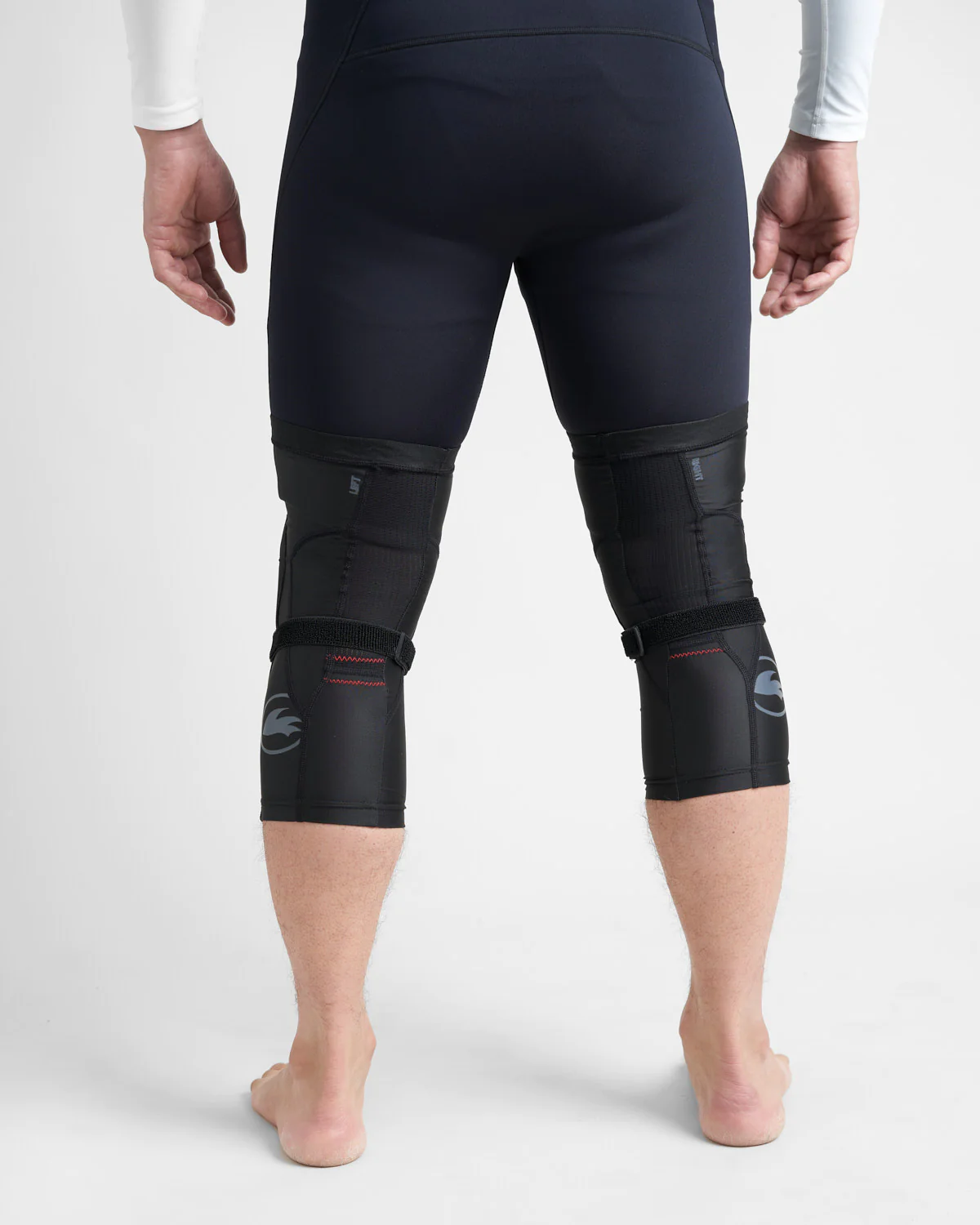 Long length knee pads that extend down to protect part of the shin. A streamlined fit with a silicon rubber elastic webbing strip at the top band and above the calf maintains the position of the knee pads, whilst an additional elastic strap is positioned just below the knee to further secure the pad in place. Comfort is enhanced through stretch panels around the main knee panel to allow stretch where you need it the most and improved movement, with a breathable mesh panel down the back to add breathability to the back of your leg. Durability and protection has been achieved to follow in our ‘Race Armour’ range, with the use of Duratex II at the outer surface and NBR rubber used on the inside – this has minimal water absorption so weight will not be added to the pads when wet, the properties of the rubber also mean that the pad will mould to your body slightly and also adds some shock absorption for those falls!