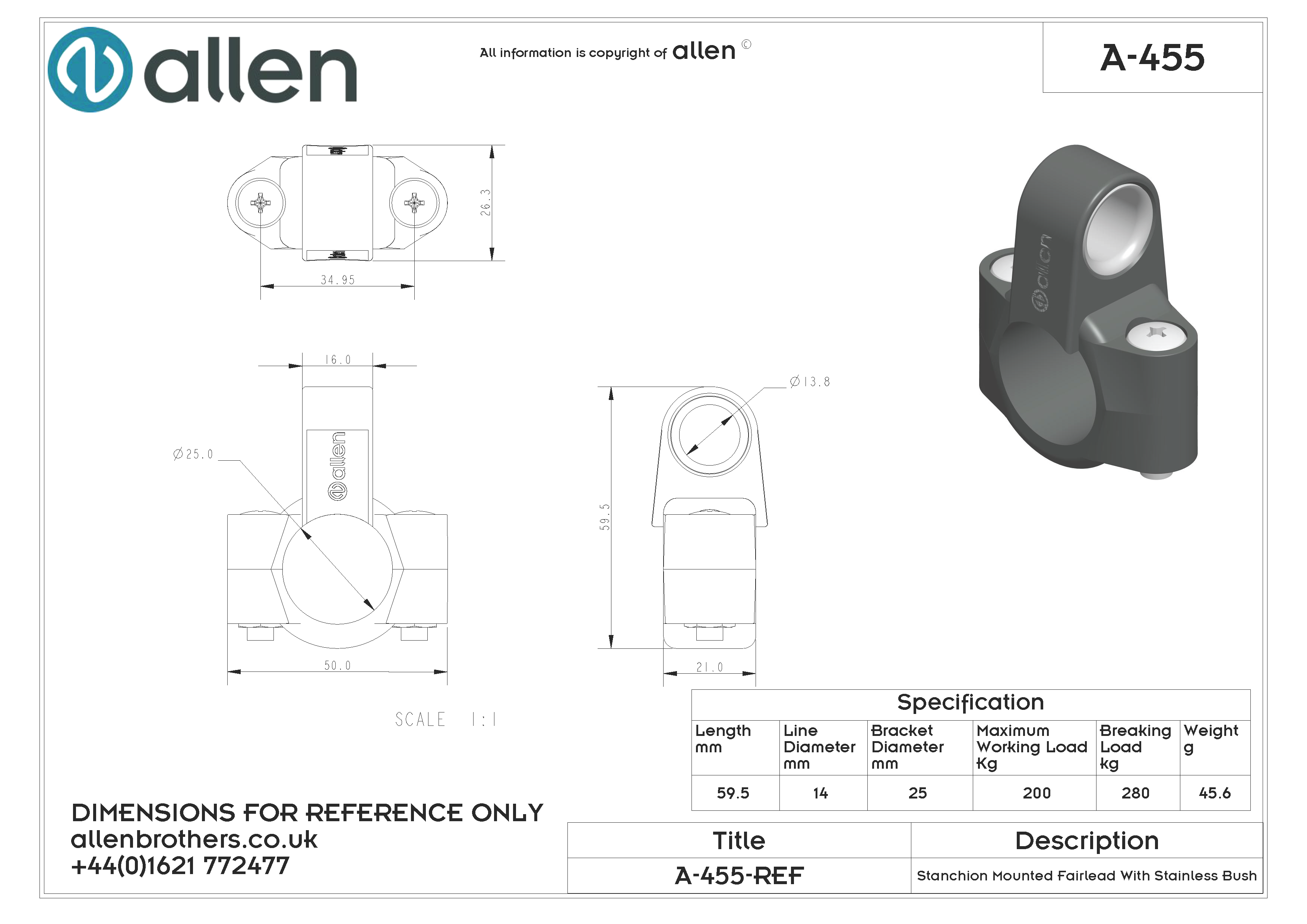 Stanchion Mounted Fairlead With Stainless Steel Bush